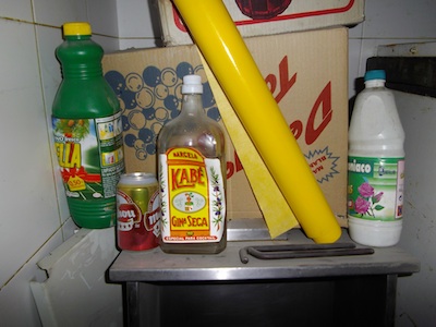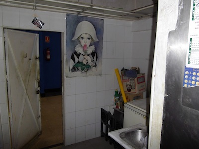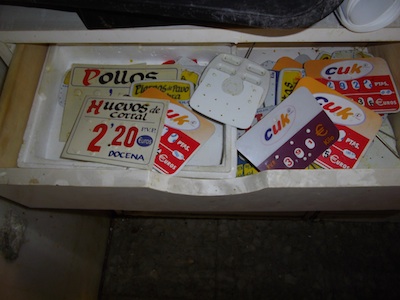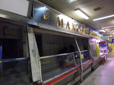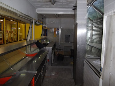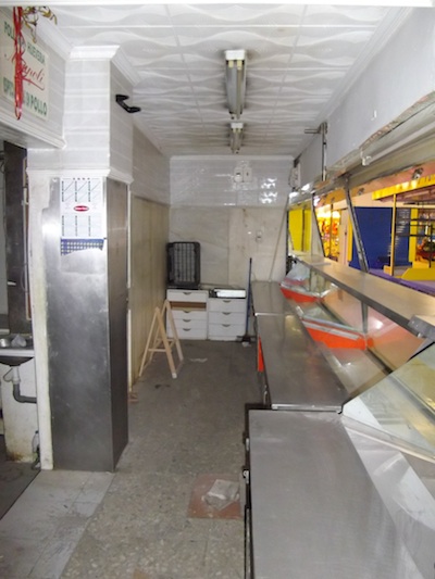 Esta es la pollería Manoli. Uno de los dos puestos que formarán la tienda de libros. Y algunos detalles de cómo nos la encontramos.