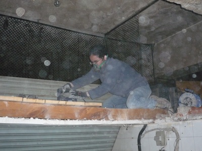 El polvo acumulado de 50 años nos cae sobre la cabeza (y los pulmones) al tirar el falso techo.